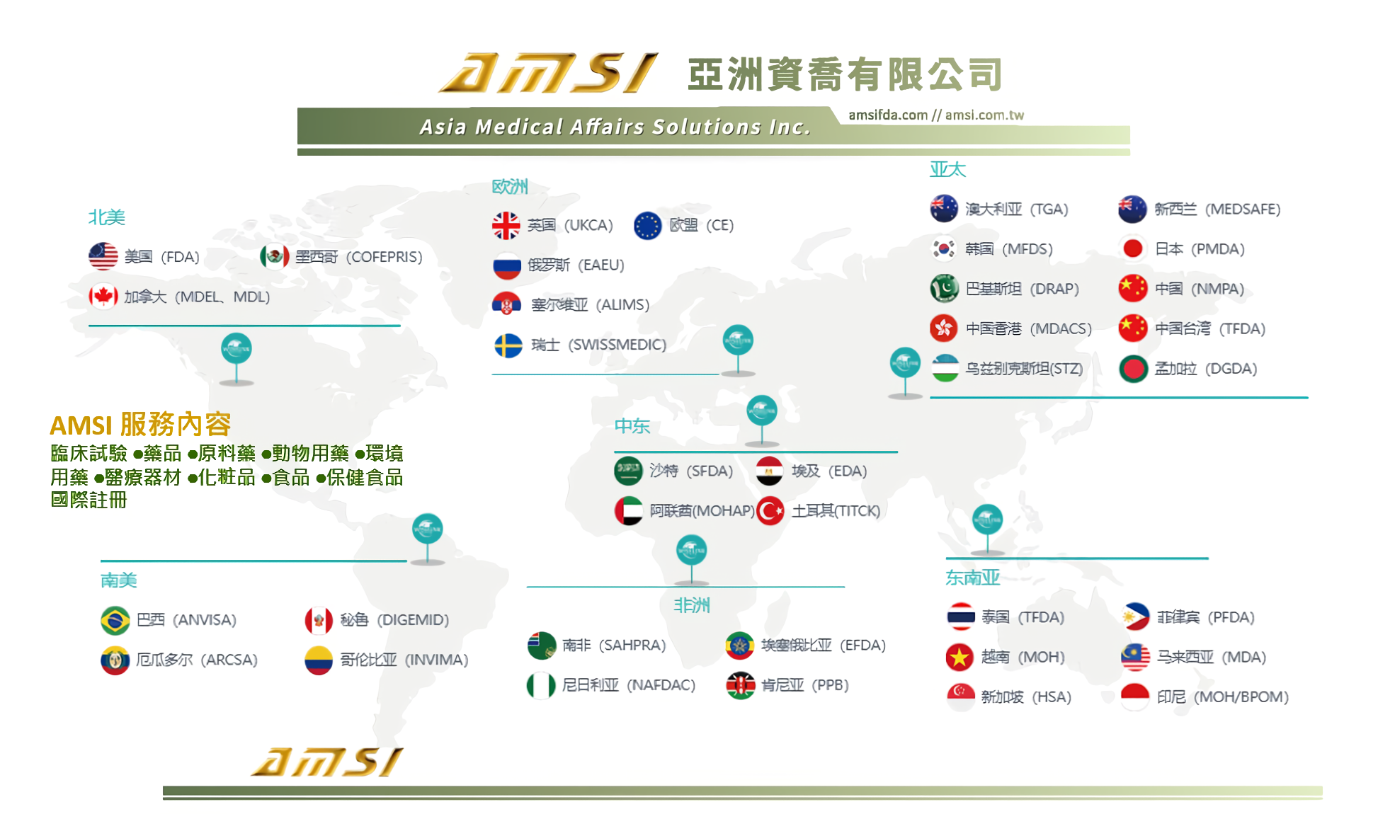 亞洲資喬有限公司(AMSI)成立於2002年,是少數能同時跨足藥品、醫療器材、化妝品與食品的專業顧問公司。